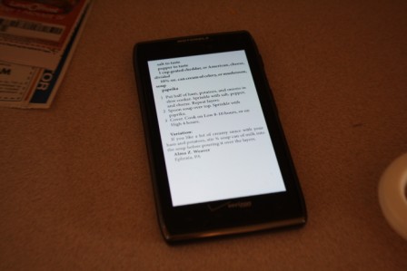 One of the things I really like is they have an ebook version that downloads straight to your phone! Yay! No more lugging around the cookbook or trying to keep the page to stay open while you’re multi-tasking! So, I found a recipe that looked delicious. Ham and scalloped potatoes. Only I didn’t have ham, I had four boneless porkchops that I cut into strips.